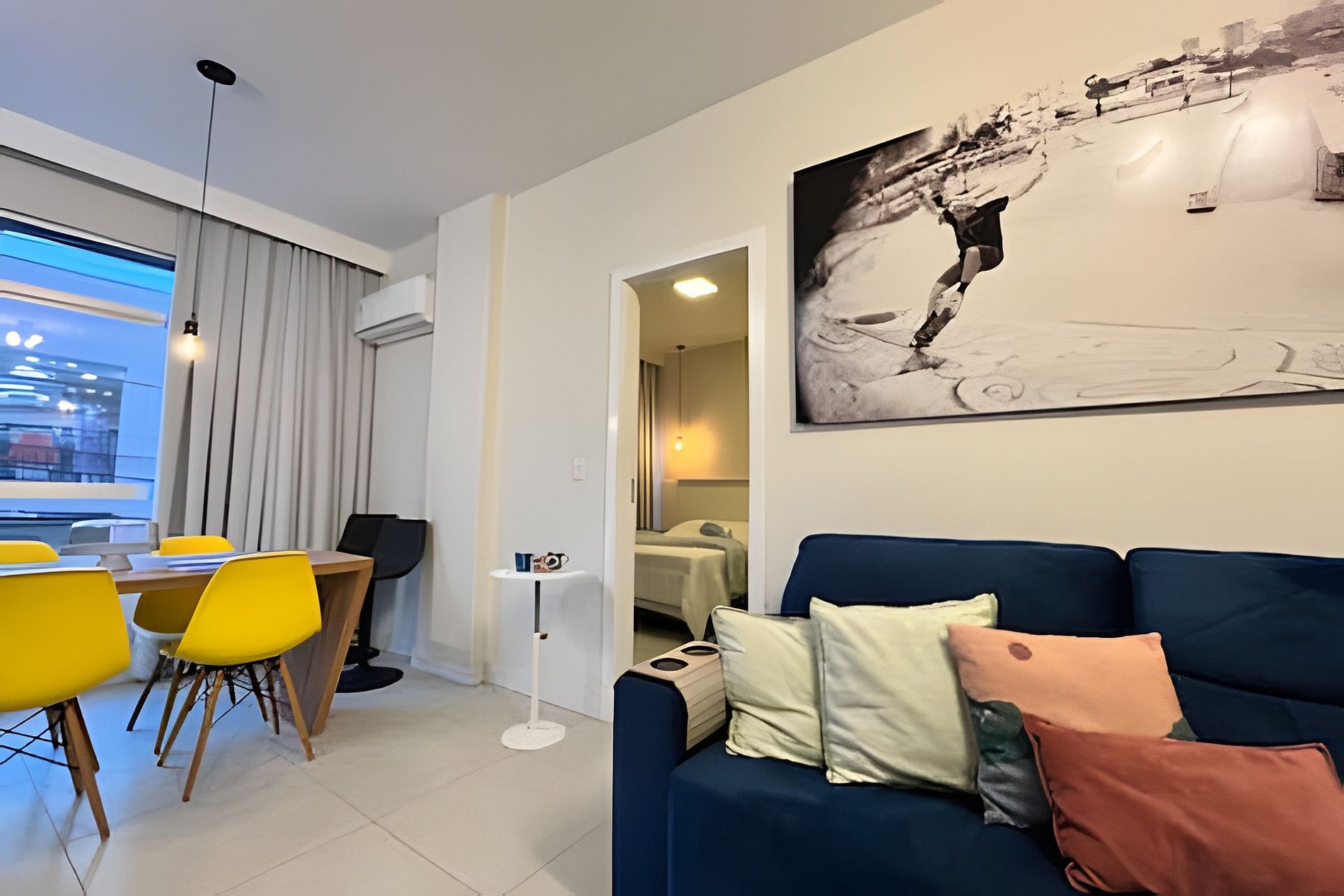 Localizado no primeiro andar, tem fácil acesso e está cercado por lojas, cafés, mercados e opções de lazer. Aqui você não precisa de carro para curtir a cidade. Basta descer e caminhar: a praia está bem próxima!