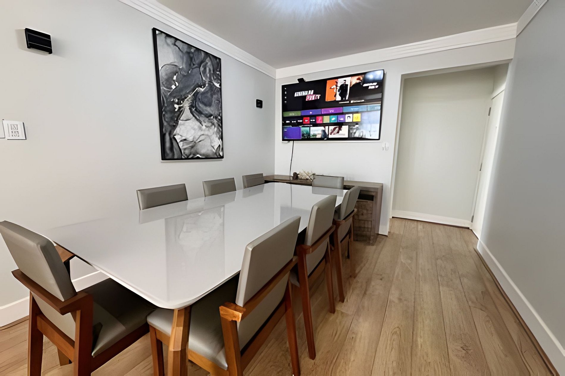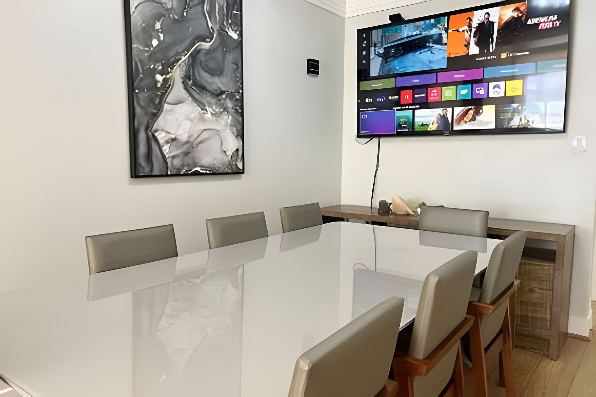 7. Contamos com TV com serviço Smart. Outras plataformas de assinatura podem ser configuradas pelos hóspedes, incluindo seu login e senha. Não esqueça de desconectar ao sair.