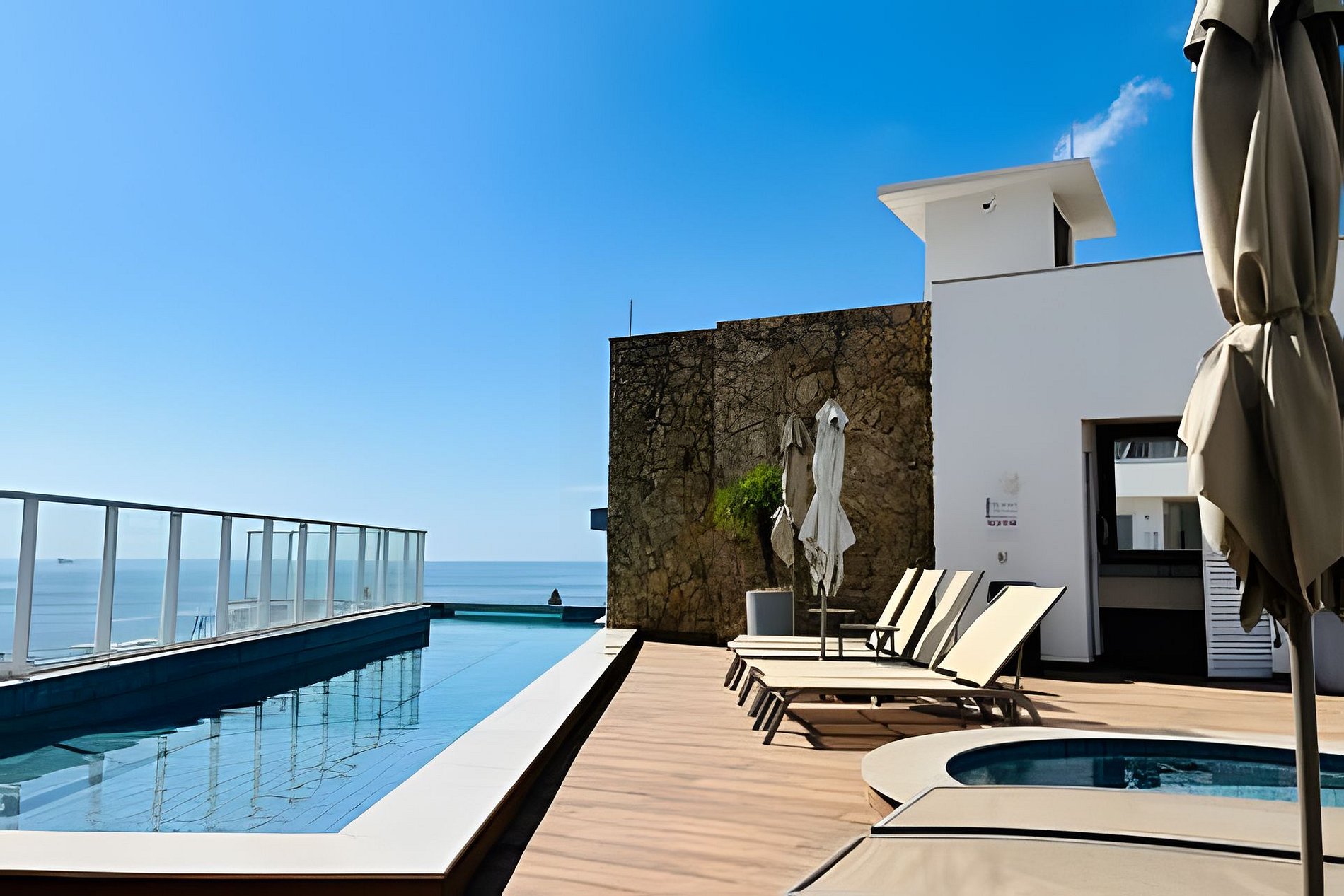 É permitido acessar o terraço para caminhadas, passeio ao céu aberto e para apreciar a vista do mar/oceano e da cidade.