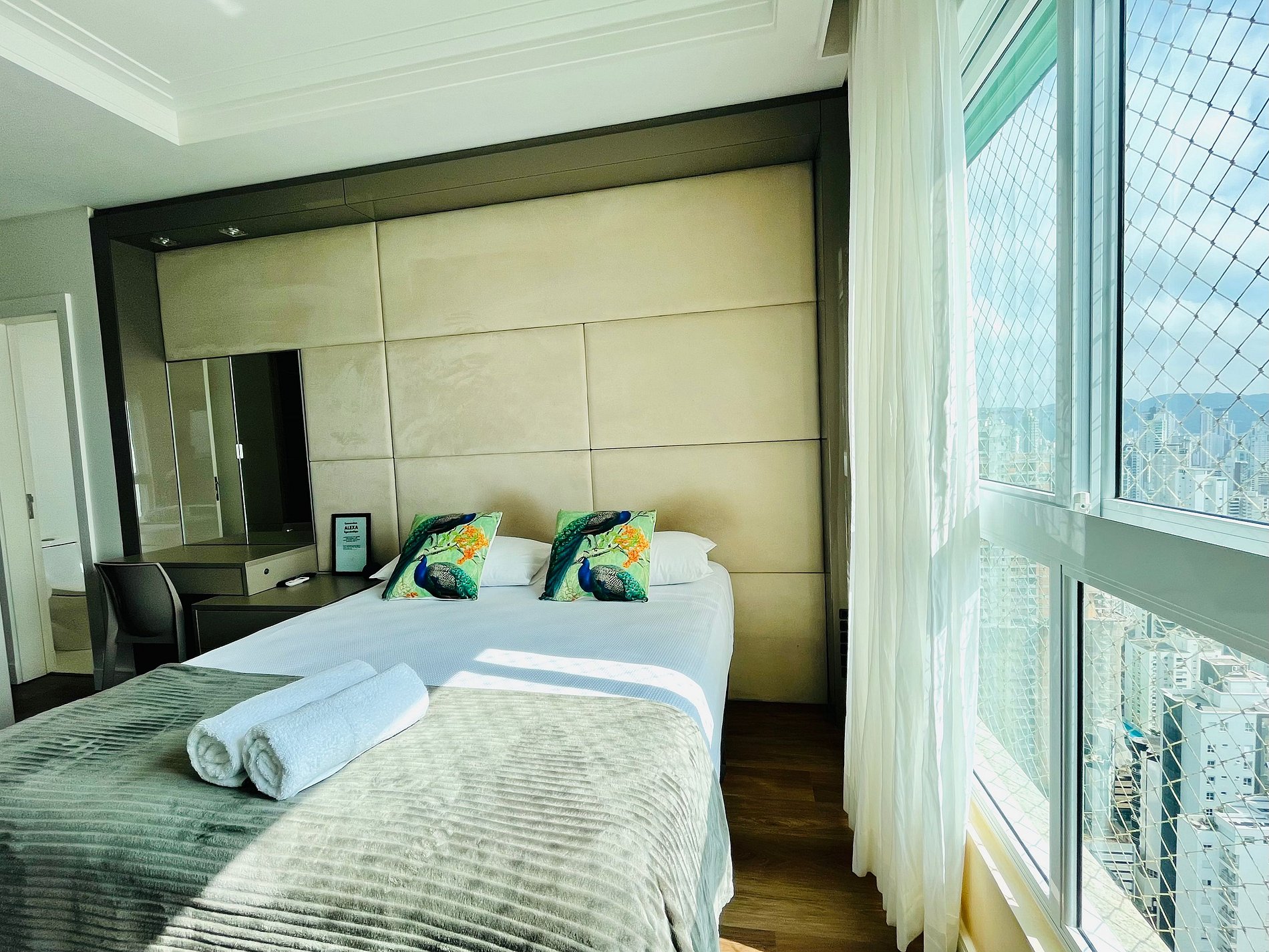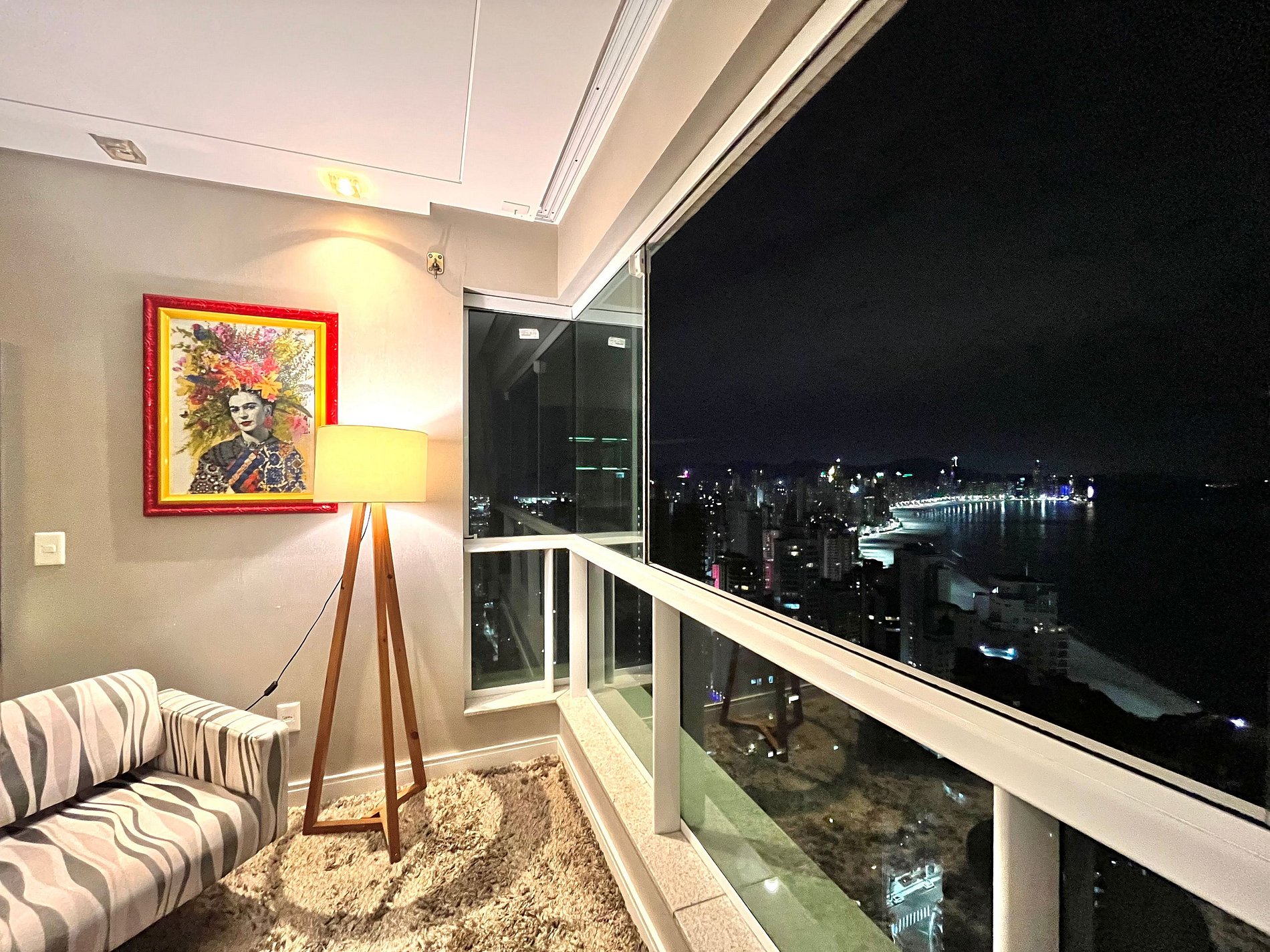 Na suíte principal e na sala de estar temos o sistema integrado Alexa. Tv smart e uma varanda com vista incrível para a praia de BC.