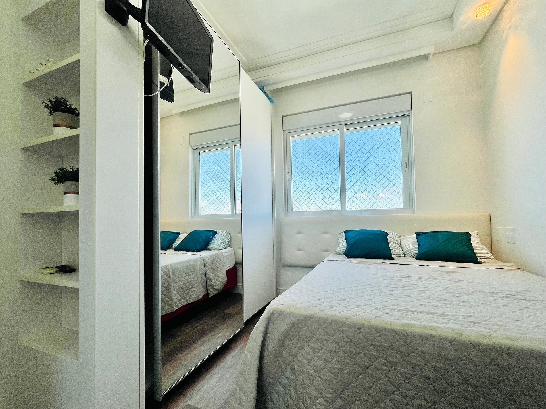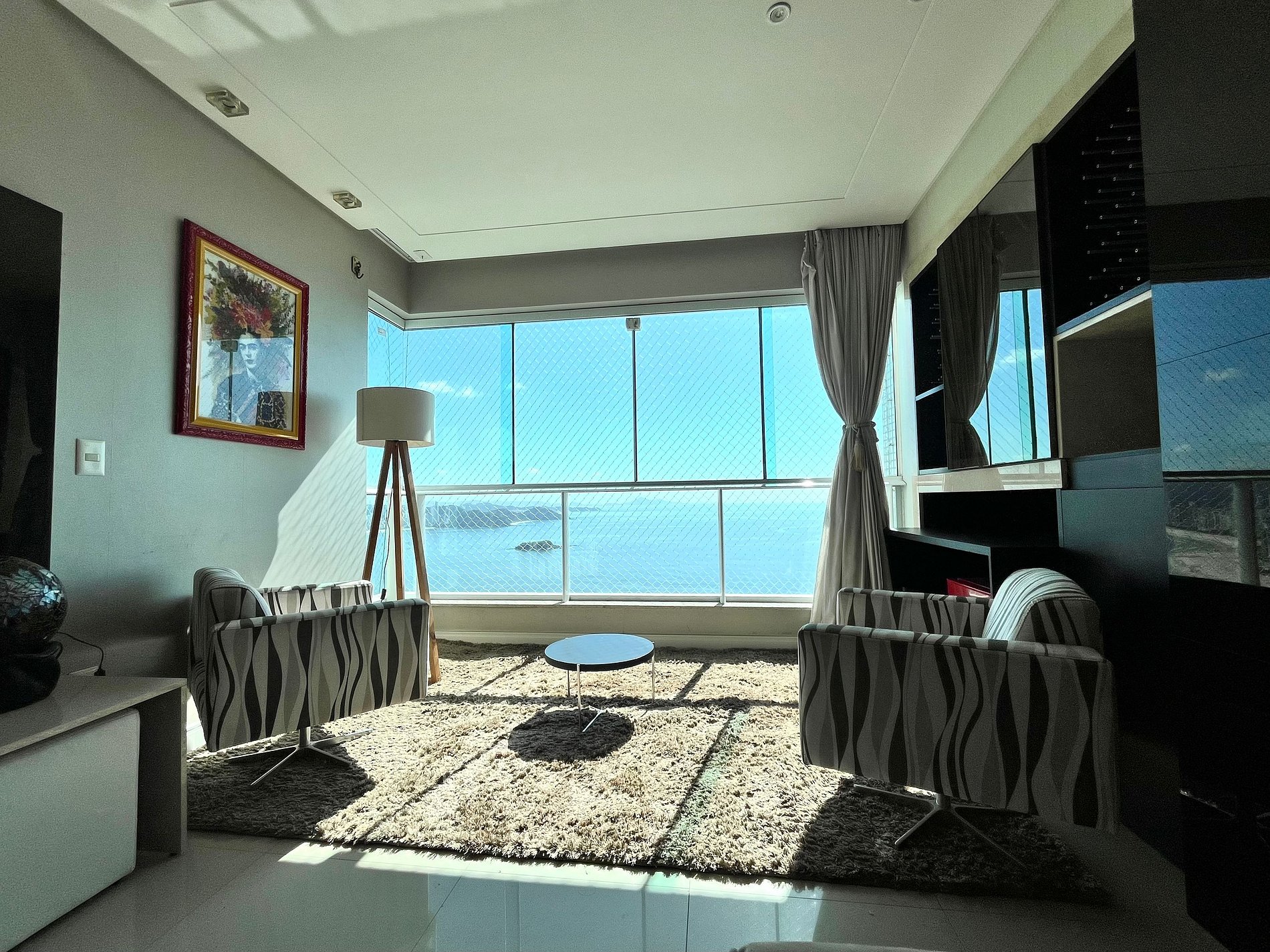 Na suíte principal e na sala de estar temos o sistema integrado Alexa. Tv smart e uma varanda com vista incrível para a praia de BC.